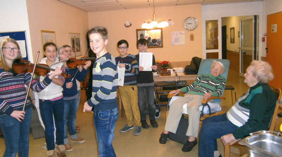 An einem Freitag im Advent planten wir, die Klasse 7a, dem Altenheim auf der Burg in Frankenberg einen Besuch abzustatten. Wir machten uns um 8 Uhr auf den Weg zum Altenheim. Wir wurden dort sehr herzlich von der Leiterin Frau Barthelmay empfangen und auf verschiedene Stationen aufgeteilt. Dort setzten wir uns zu einer Gruppe, die gerade frühstückte. Auch wenn wir am Anfang etwas ängstlich waren, konnten wir uns dann aber doch sehr gut mit ihnen unterhalten. Die Bewohner erzählten viel von ihrem früheren Leben, was wir sehr interessant fanden. Anschließend, als alle von der Tischgruppe da waren, haben unsere vorbereiteten Balladen, Gedichte, Geschichten und Musikstücke vorgetragen. Die älteren Leute haben sich gefreut, dass wir da waren und haben gespannt zugehört und fleißig mitgesungen. Als die Zeit um war, trafen wir uns beim Eingang, bekamen von Frau Barthelmay noch einige Informationen zu ihrer Arbeit und konnten Fragen stellen. Dann bedankten und verabschiedeten wir uns. Wir denken, dass der Tag sich im Altenheim sehr gelohnt hat und wir viele neue Eindrücke bekommen haben.