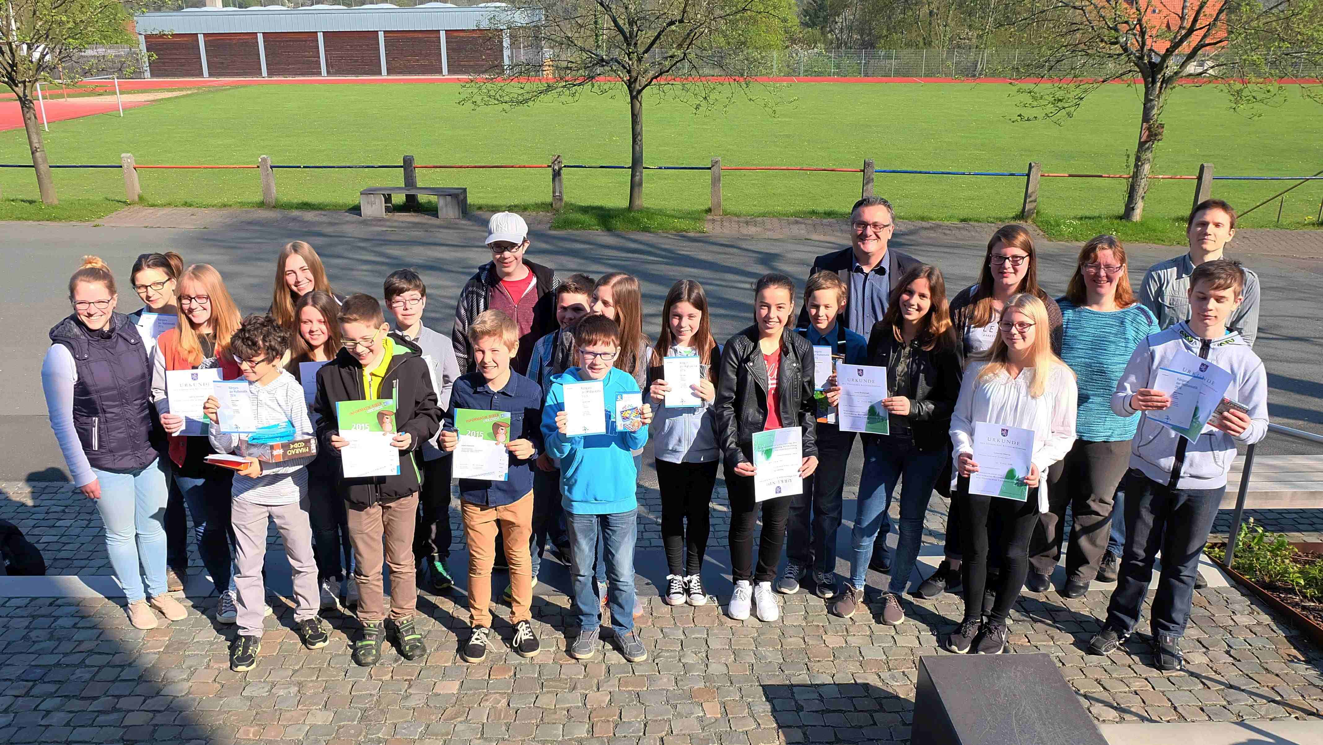 Eine besondere Ehrung wurde Leonie Neumark aus der (8b/G9) und Antanas Gargarov (8a/G8) zuteil, die als Kreissieger ihrer Leistungsgruppen die Finalrunde des Hessischen Mathematik-Wettbewerbes erreicht haben (s. gesonderten Artikel).