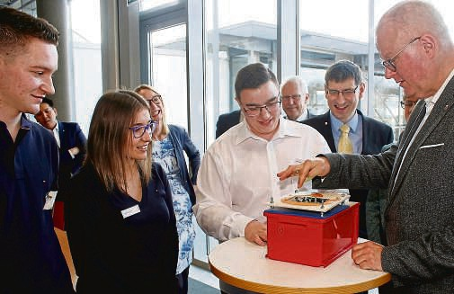 Seit zehn Jahren gibt es den hessischen Demografie-Preis. Einer der ersten Preisträger war 2011 die „Young Engineer Academy“ gewesen, die die Viessmann-Werke seinerzeit in Kooperation mit der Frankenberger Edertalschule und der Technischen Hochschule Mittelhessen aus der Taufe gehoben hatten. Die Young Engineer Academy hatte den Demografie-Preis in der Kategorie „Fachkräftenachwuchs“ erhalten. Aus diesem Anlass ließ sich der hessische Finanzminister Dr. Thomas Schäfer am Freitag von jungen Teilnehmern und erfolgreichen Absolventen in Allendorf informieren. „Als Familienunternehmen sind wir in der Region stark verwurzelt“, sagte Annette Viessmann in Vertretung ihres erkrankten Mannes bei der Begrüßung. Gegründet worden sei die Young Engineer Academy seinerzeit, um frühzeitig das Interesse junger Menschen am Ingenieursberuf zu wecken. „Das Projekt ist erfolgreich und beispielgebend“, sagte Annette Viessmann. „Inzwischen haben mehr als 300 Schüler an dem Projekt teilgenommen. Viele von ihnen haben den Weg in einen technischen Beruf gefunden“, sagte Viessmann-Personalchef Steffen Buch. „Was man heute cross-funktionale Zusammenarbeit nennt, haben wir schon vor zehn Jahren gemacht. Heute sind wir stolz darauf, die Früchte ernten zu können.“ Was Demografie bedeutet, erklärte Finanzminister Dr. Schäfer am eigenen Beispiel: mit ihm zusammen seien 1966 rund 1,4 Millionen Menschen geboren worden, zusammen mit seiner 2008 geborenen Tochter nur noch 700 000. Das Unternehmen Viessmann habe, in Zusammenarbeit mit der Edertalschule, frühzeitig die Zeichen der Zeit erkannt. Bereits in der Mittel- und Oberstufe könnten sich Schüler der Edertalschule für den zweijährigen Young-Engineer-Academy-Kurs bewerben, der ihnen mit Betriebserkundungen, Praktika, Schulungen und Veranstaltungen der Technischen Hochschule Mittelhessen einen intensiven Einblick in die Praxis des Ingenieurberufes biete, sagte Dr. Schäfer. Die jungen Leute könnten sich frühzeitig mit Physik, angewandter Mathematik und Robotik vertraut machen. „Viessmann leistet mit diesem Projekt einen engagierten Beitrag zur Berufsorientierung junger Leute“, lobte der Minister. Die CDU-Landtagsabgeordnete Claudia Ravensburg nutzte den Besuch, um dem Minister einen Wunsch ans Herz zu legen: ein Zentrum für MINT-Berufe (Mathematik, Informatik, Naturwissenschaften und Technik) an der Edertalschule. Schulleiter Claus-Hartwig Otto nahm die Vorlage dankend auf: „Wir brauchen unbedingt ein Labor“, sagte Otto. Die Forschung, die derzeit an der Schule betrieben werde, finde „in irgendwelchen Abstellkammern“ statt. Landrat Dr. Kubat unterstütze das Projekt und habe bereits eine Machbarkeits-Studie in Auftrag gegeben. „Ich besorge mir mal die Unterlagen“, versprach der Finanzminister.