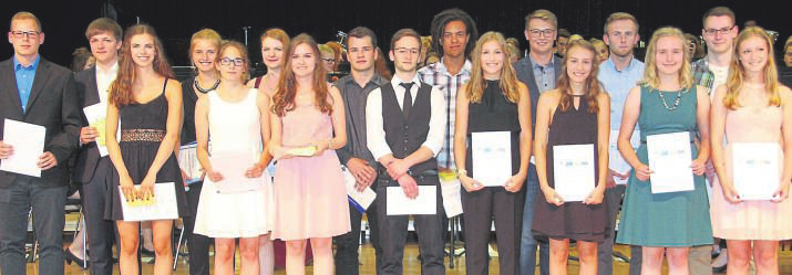 Bei der Überreichung der Abizeugnisse am Frankenberger Gymnasium Edertalschule wurden Auszeichnungen für besondere Leistungen verliehen. Die Übergabe der Auszeichnungen und Preise nahm Studienleiterin Melanie Eckstein zusammen mit den Fachbereichsleitern vor. Die Preise: Religionpädagogisches Institut der evangelischen Kirche: Jan-Luca Neumark, Nosa Debus, Marlena Kesper, Tabea Scheele; Verband der Schulgeographen: Cecilia Feisel, Louisa Garthe; Deutsche Mathmatikervereinigung: Ingrid Dippel; Deutsche physikalische Gesellschaft: Ingrid Dippel; Mitgliedschaft in der Deutschen physikalischen Gesellschaft: Florian Fuchs, Markus Langguth, Henri Merle, Jan-Luca Neumark; MINT-Zertifikate: Laura Hallmann, Jan-Luca Müller, Dina Röhle, Theresa Vaupel, Johanna Wolf, Alexander Zülch; Gesellschaft deutscher Chemiker: Jan-Luca Müller. Das Bild zeigt die besonders geehrten Abiturienten.