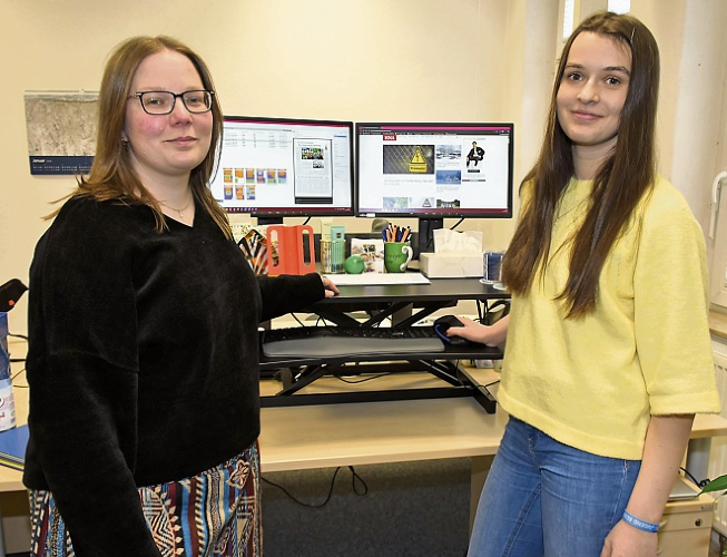 Praktikum bei der HNA: Redakteurin Juliane Becker (links) zeigt Praktikantin Pauline Flach die Redaktionssoftware.