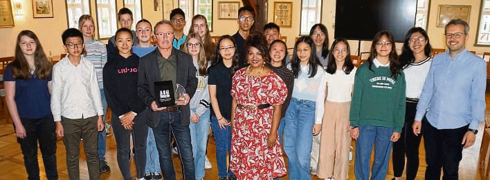 Eine Schülergruppe aus Singapur ist derzeit zu Gast an der Frankenberger Edertalschule. Die zehn Jugendlichen sind am Pfingstsonntag angereist und bleiben noch bis Mittwoch, 29. Mai im Frankenberger Land. Untergebracht sind die Schüler in Gastfamilien bei Edertalschülern. Die Organisation vor Ort erfolgt durch Lehrer Marco Nezi (rechts). Erster Stadtrat Willi Naumann (vorne) hat die Gäste aus Singapur gestern offiziell im Sitzungssaal des Rathauses begrüßt und nahm eine Skulptur als Gastgeschenk entgegen. „Ich glaube, dass so ein Austausch sehr wichtig ist, um mehr über andere Länder zu erfahren“, sagte er. Kommende Woche steht unter anderem auch ein Bauernhofbesuch bei Familie Landau in Röddenau auf dem Programm. Für die Schüler sei es etwas „völlig Außergewöhnliches“ eine Kuh oder ein Pferd zu sehen, sagte Lehrerin Sheela Östlund aus Singapur.