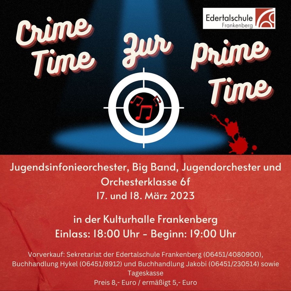 Frühjahrskonzerte des Orchesters und der Big Band der Edertalschule unter dem Motto „Crime Time zur Prime Time“ am 17. und 18. März 2023