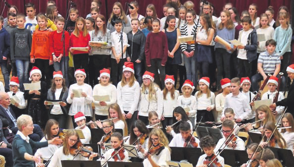 freude an floeten und geigen Bild 181218Das, womit der musikalische „Stern über Bethlehem“ sie froh gemacht hatte, wie es im gemeinsamen Eingangslied hieß, wollten sie austeilen – es gelang ihnen mit vielen schönen Stimmen und Instrumentenklängen. Zum traditionellen Adventskonzert der Nachwuchsmusiker hatten die Orchesterklassen 5 und 6 sowie das Jugendorchester des Gymnasiums mit musischem Schwerpunkt eingeladen, und rund 300 Eltern und Freunde der Frankenberger Edertalschule erlebten in der Kulturhalle beeindruckt, was in den vergangenen Wochen und bei zusätzlichen Freizeiten und Workshops mit den Musiklehrern Gertrud Will, Martin Fischer und Matthias Müller erarbeitet worden war. „Wenn der Stress mit den Klassenarbeiten vorüber ist, sich der Klang der Flöten, Geigen und Celli durch die Schul-Korridore zieht, freuen wir uns auf dieses vorweihnachtliche Konzert“, meinte Oberstudiendirektor Claus-Hartwig Otto. Er dankte allen jungen Musikanten und Sängern, den Musiklehrern und Eltern, die die Vorbereitungen unterstützt hatten.