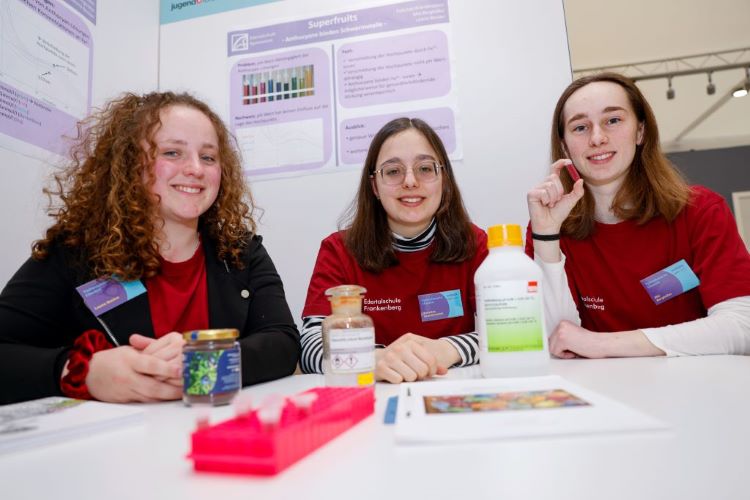 Die Edertalschülerinnen Leona Becker, Mia Berghöfer und Felicitas Brandenstein siegten mit ihrem Projekt „Anthocyane binden Schwermetalle“ bereits im Februar beim Regionalentscheid in Kassel in der Kategorie „Chemie“ und holten sich damit die Qualifikation zum Landesentscheid von Jugend forscht. Dieser fand nun vom 29.-30. März 2023 in Darmstadt bei der Firma Merck statt.