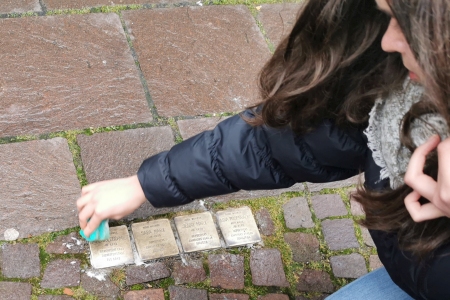 Im Geschichts- und Religionsunterricht behandelten wir, die 10d, den Nationalsozialismus und dessen Folgen. Uns interessierte auch das jüdische Leben und die Auswirkungen des Nationalsozialismus in unserer Stadt Frankenberg. Daraufhin beschlossen wir, im Dezember 2021 mit unseren Fachlehrerinnen Frau Platonow und Frau Alberding die Stoplersteine in der Frankenberger Altstadt aufzusuchen, sie zu säubern und in neuem Glanz erstrahlen zulassen.