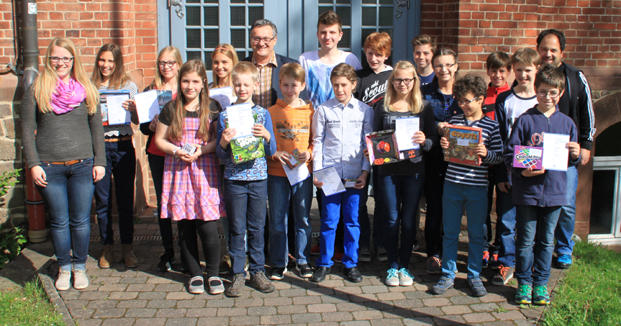 Grund zur Freude gab es bei den Mathematikern an der Edertalschule: für die herausragenden Leistungen im Känguru-Wettbewerb wurden 17 Schülerinnen und Schüler mit besonderen Preisen überrascht. Am Känguru-Wettbewerb an der Edertalschule nahmen 19. März 231 Schülerinnen und Schüler aller Jahrgangsstufen teil. Weltweit findet der Wettbewerb in circa 60 Ländern statt, dabei sind mehr als 6 Millionen Jugendliche vertreten. In Deutschland waren 2015 mehr als 890.000 Kinder an dem Wettbewerb beteiligt, der als freiwillige Klausur unter Aufsicht geschrieben wird. Die innerschulische Organisation und Auswertung an der Edertalschule übernahm Frau Böcher. In einer Ansprache gratulierte Schulleiter Herr Hermes allen Beteiligten und betonte anschließend die Bedeutung des mathematischen Verständnisses als allgemeines Bildungsziel. MINT-Koordinator Herr Blinn schloss sich an und erläuterte, dass die Teilnahme an außerschulischen Wettbewerben einen wichtigen Baustein für den Erwerb des MINT-Zertifikats darstellt, das die Absolventen der Edertalschule als besondere Auszeichnung seit diesem Schuljahr erarbeiten können.