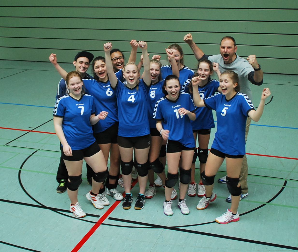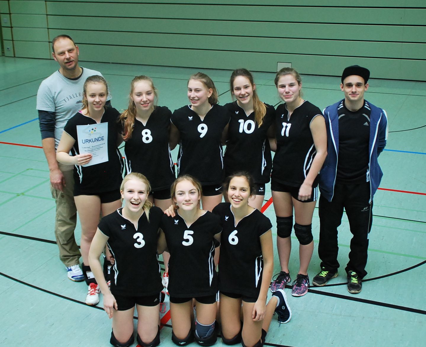 Erfolgreicher waren dieses Jahr die älteren Volleyballerinnen der ETS, die sich gegen die Schülerinnen aus Melsungen und anschließend in einem hochspannenden und engen Spiel gegen den Dauerrivalen und Turnierfavoriten aus Biedenkopf durchsetzen konnten. Von Beginn an konzentriert sorgten vor allem die gute Aufschlagqualität und die stabile Annahme-/Abwehrarbeit für einen unerwartet ungefährdeten 25:18-Satzerfolg. Im zweiten Satz entwickelte sich ein spannender Schlagabtausch, in dem sich nun die Biedenköpferinnen kurz vor Satzende einen Siebenpunktevorsprung erspielten. Mit unbändigem Kampfgeist und taktisch intelligentem Spiel kamen die Edertalschülerinnen aber wieder zurück und dominierten die Schlussphase des Satzes mit druckvollen Aufschlägen und präzisen Angriffen. Mit 28:26 gewannen sie schließlich den Satz und qualifizierten sich damit für das Landesfinale in Wiesbaden. „Die Chancen gegen die Kaderschmieden und Bundesliganachwuchsteams der Landeshauptstadt sind zwar wie immer verschwindend gering, aber wir werden trotzdem versuchen unsere Gegnerinnen zu ärgern!“, verspricht Coach Krämer.